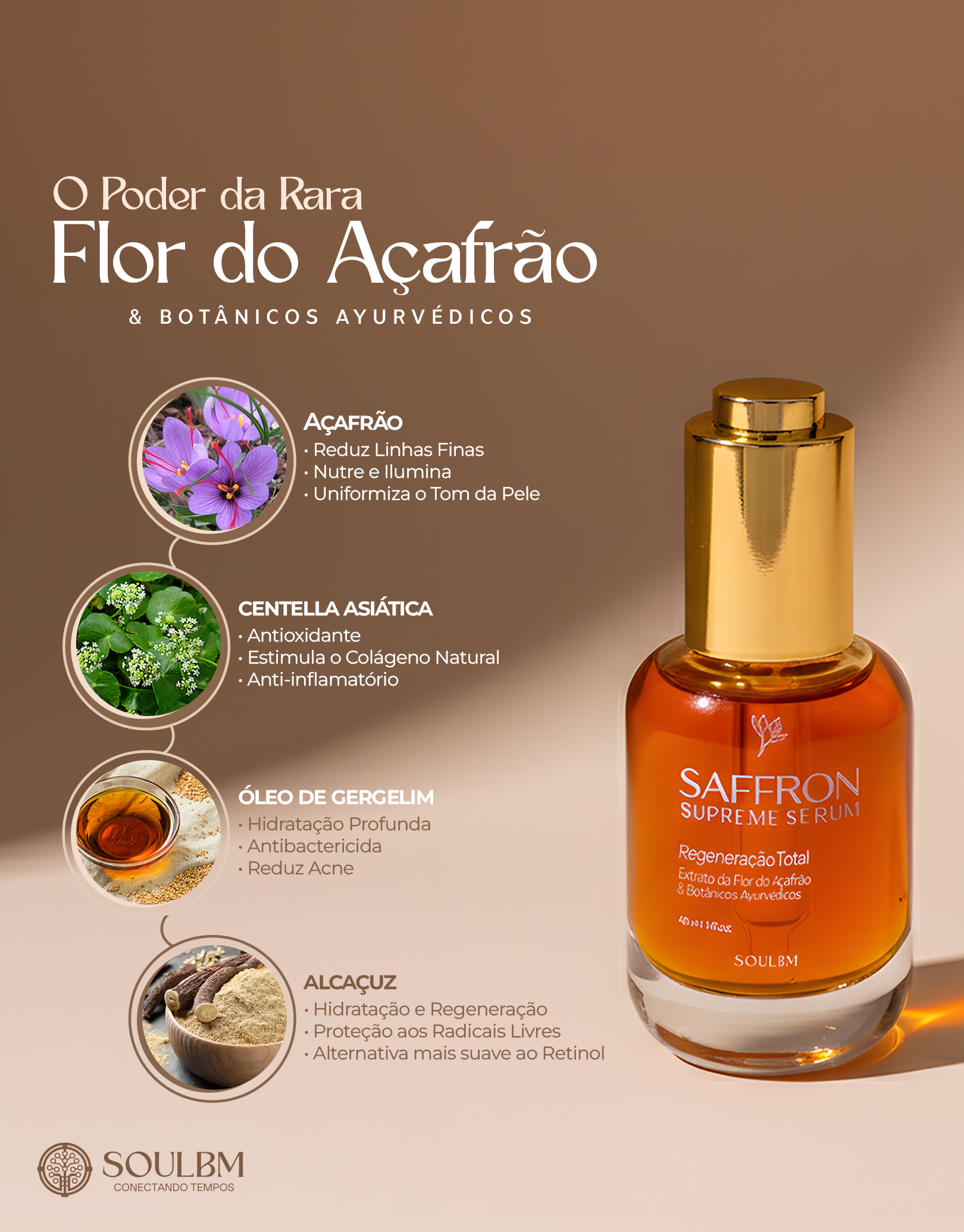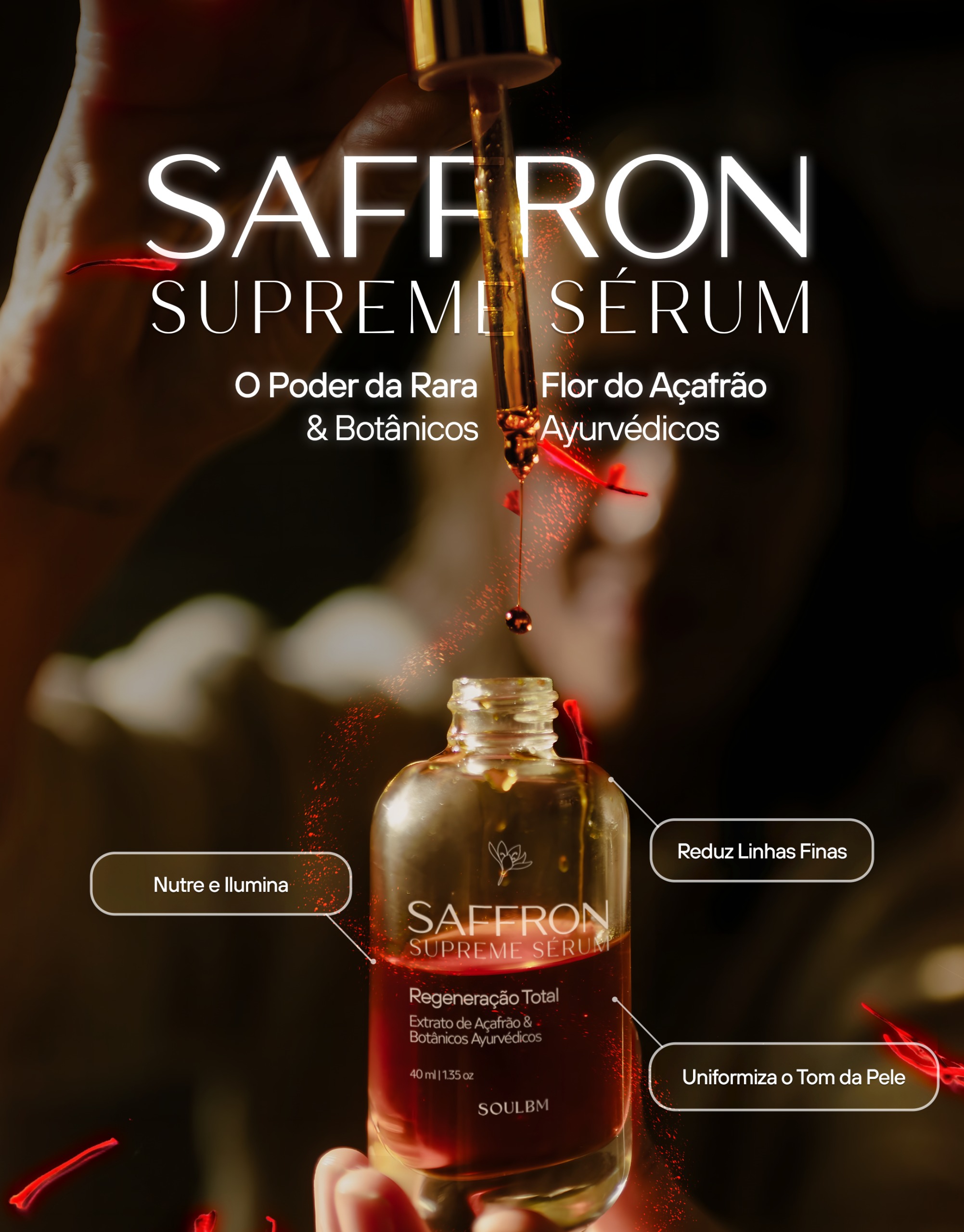 R: O Saffron Supreme Serum foi formulado para todos os tipos de pele. Seus ativos botânicos atuam para regenerar, iluminar e uniformizar o tom, sendo especialmente benéfico para peles que buscam vitalidade, clareamento de manchas e um rejuvenescimento natural.